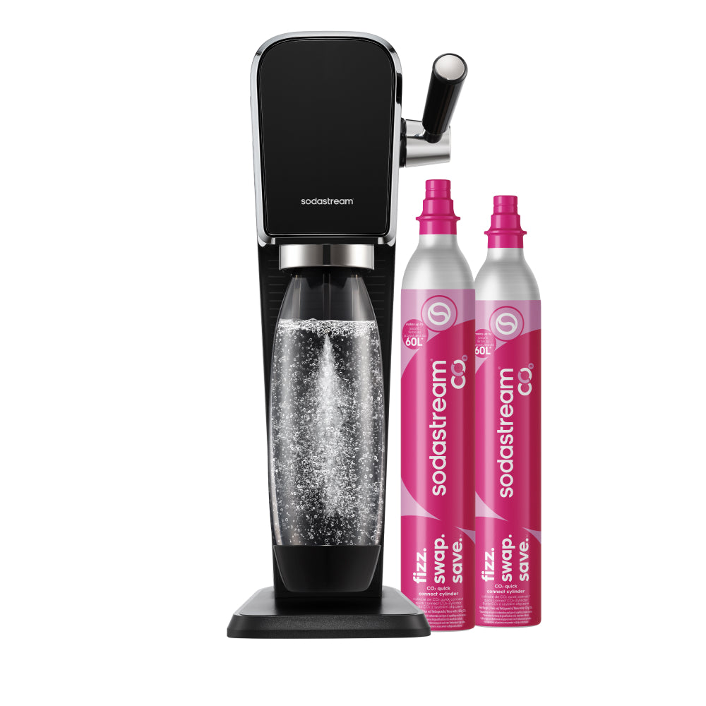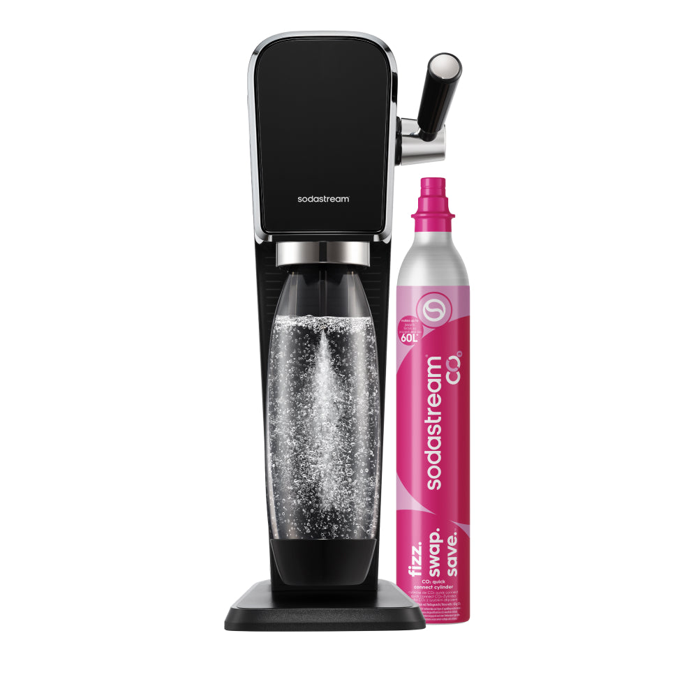Con la máquina ART™, disfrutarás del arte de crear tu propia soda en casa. Con solo presionar la palanca, podrás convertir el agua normal en agua con gas y personalizarla a tu gusto.