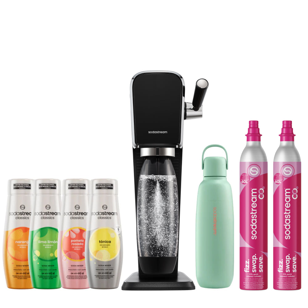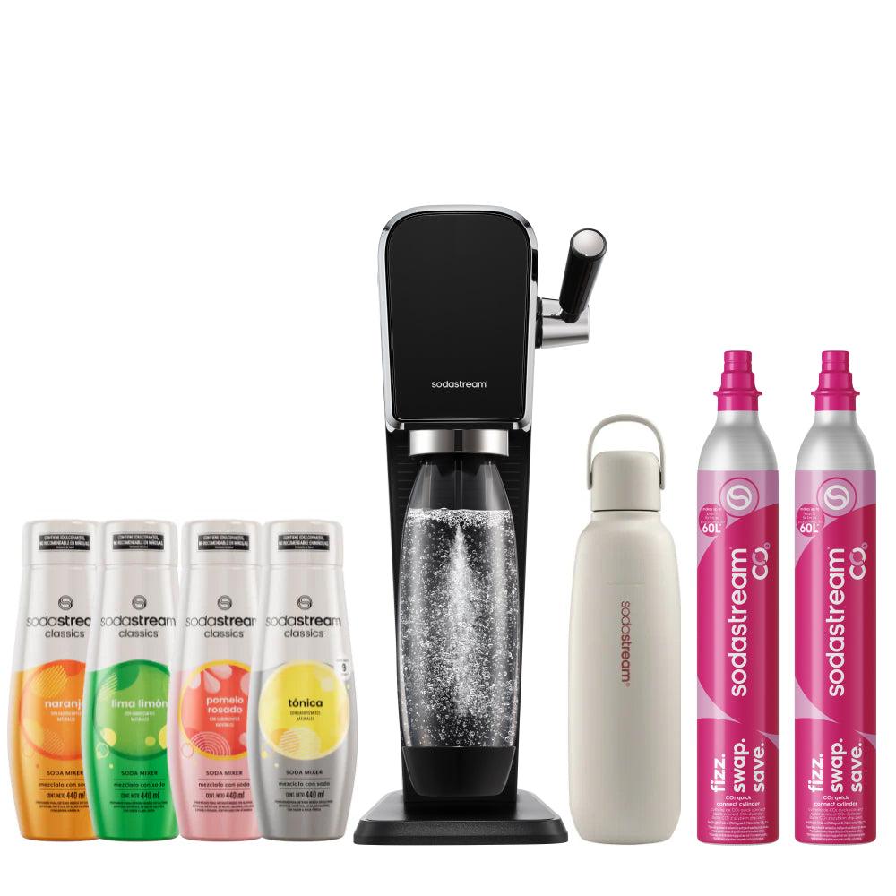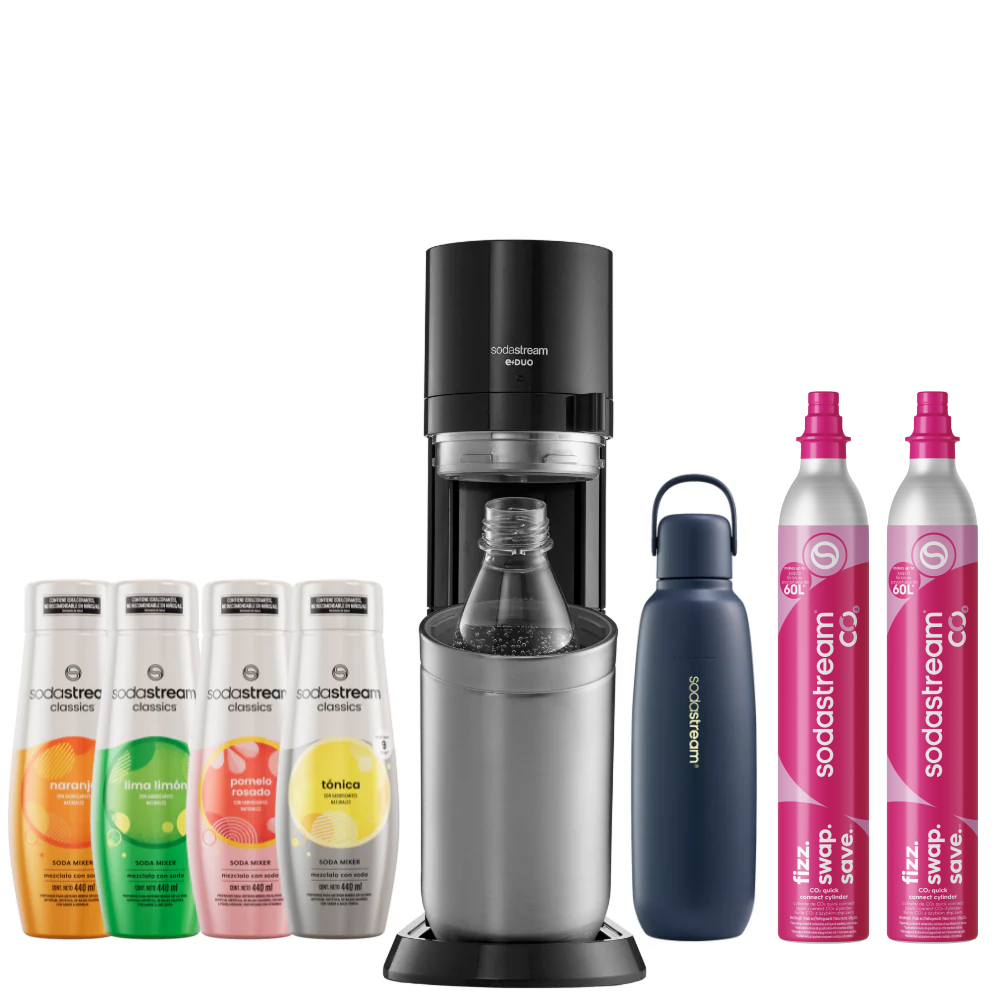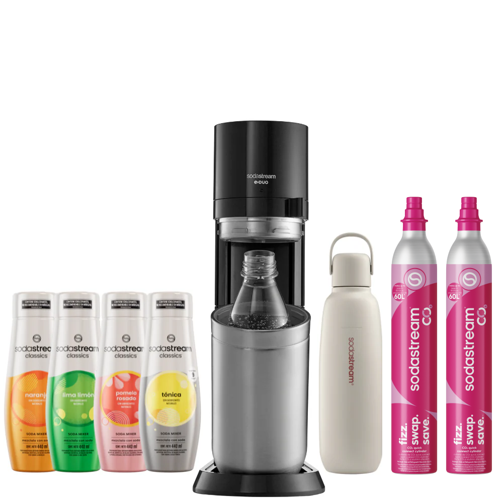 Seleccioná el modelo de máquina SodaStream que más te guste y combinala con la botella Fizz&Go del color que prefieras. La forma más simple de disfrutar tu experiencia con SodaStream, 100% a tu estilo.