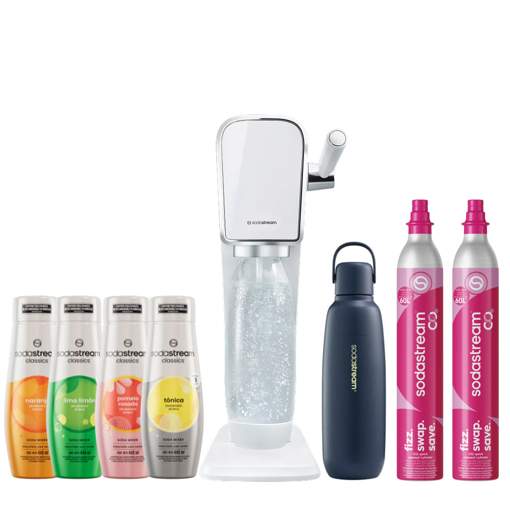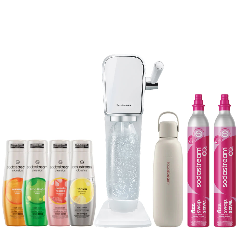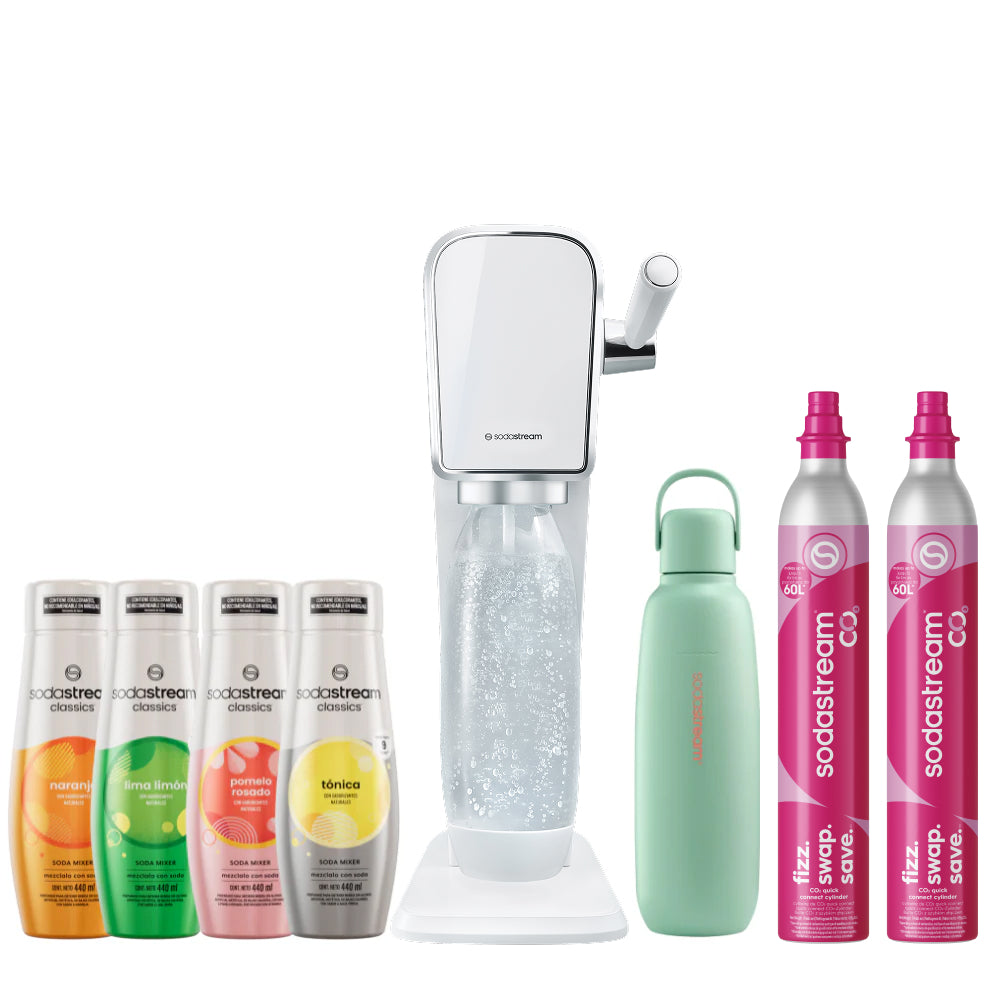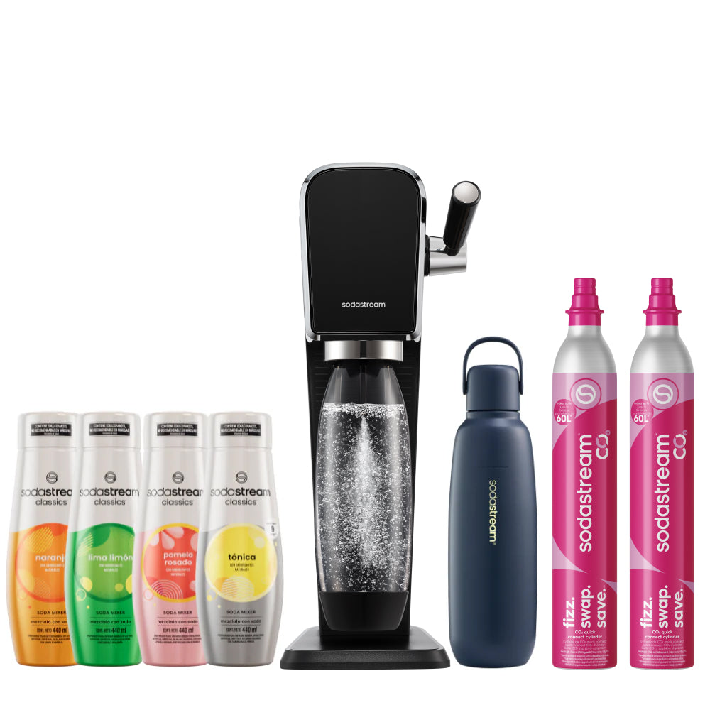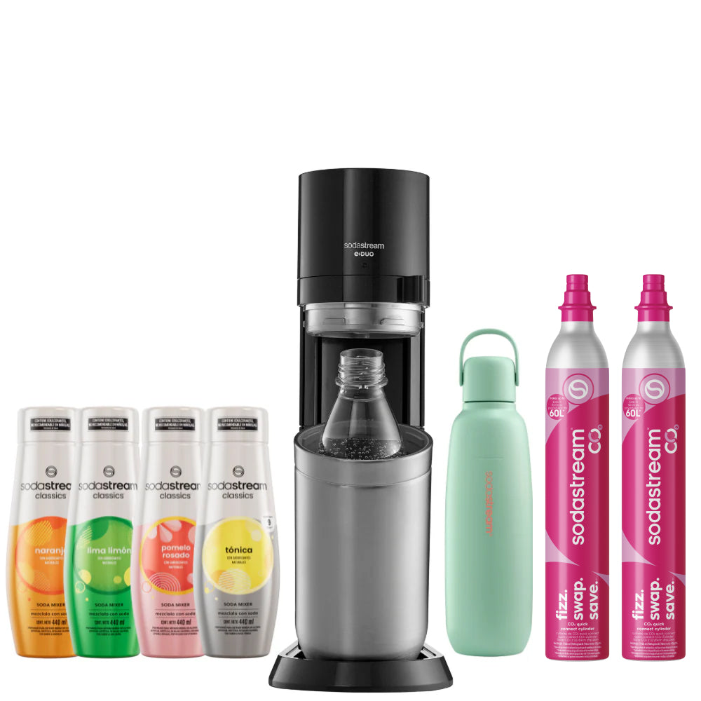 Seleccioná el modelo de máquina SodaStream que más te guste y combinala con la botella Fizz&Go del color que prefieras. La forma más simple de disfrutar tu experiencia con SodaStream, 100% a tu estilo.