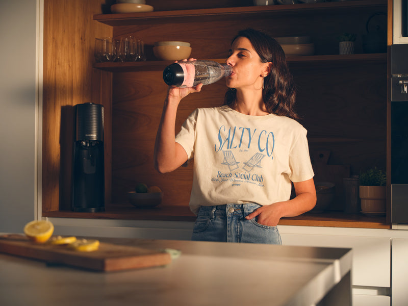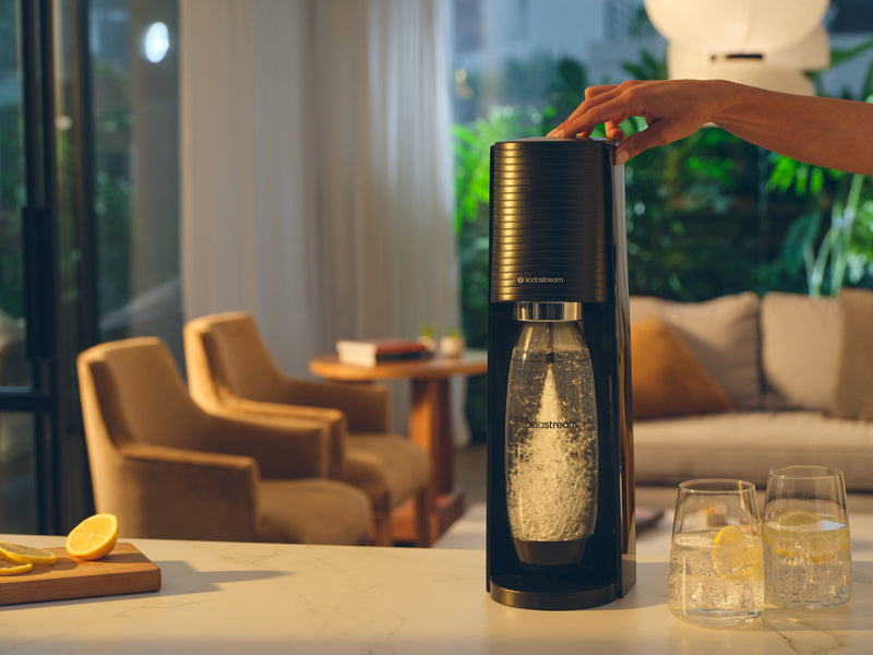 Con un diseño compacto y elegante, la máquina TERRA es muy fácil de usar. Vas a poder hacer tu soda en casa en segundos. Tan solo pulsando un botón, podrás elegir el nivel de gasificación que prefieras.